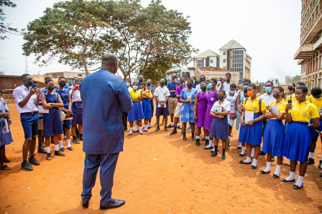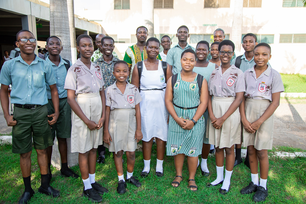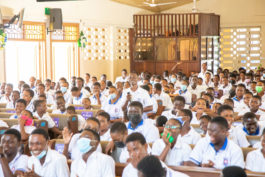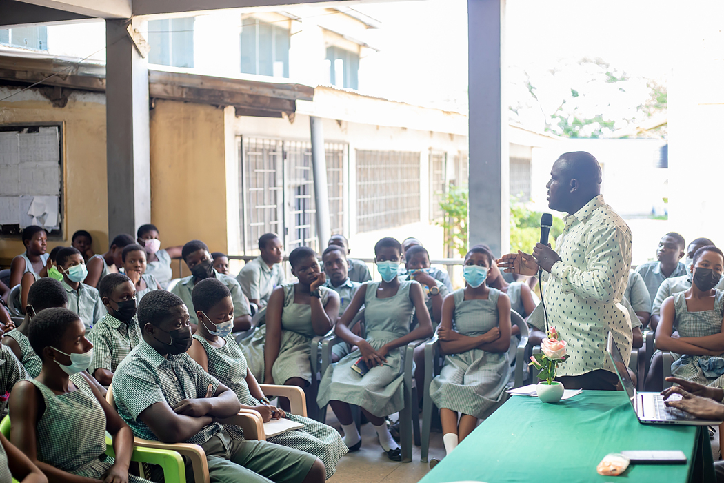 Hon. Yves Nii Noi Hanson-Nortey member of parliament for Tema Central Constituency with students of Presbyterian Senior High School at the Meridian Enclave
