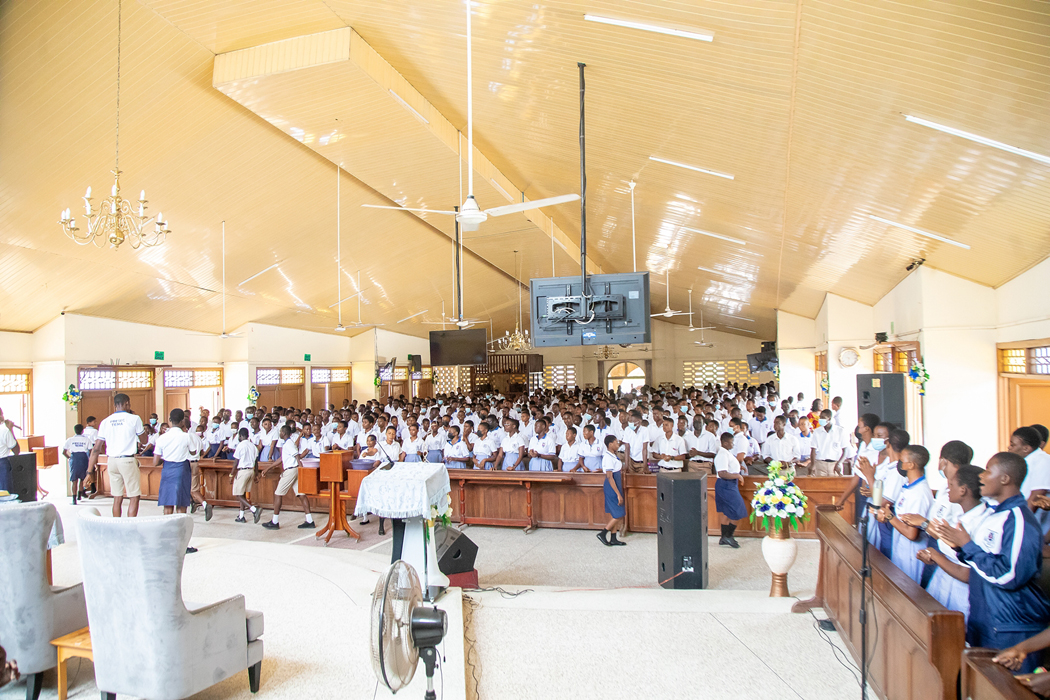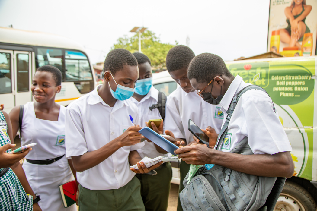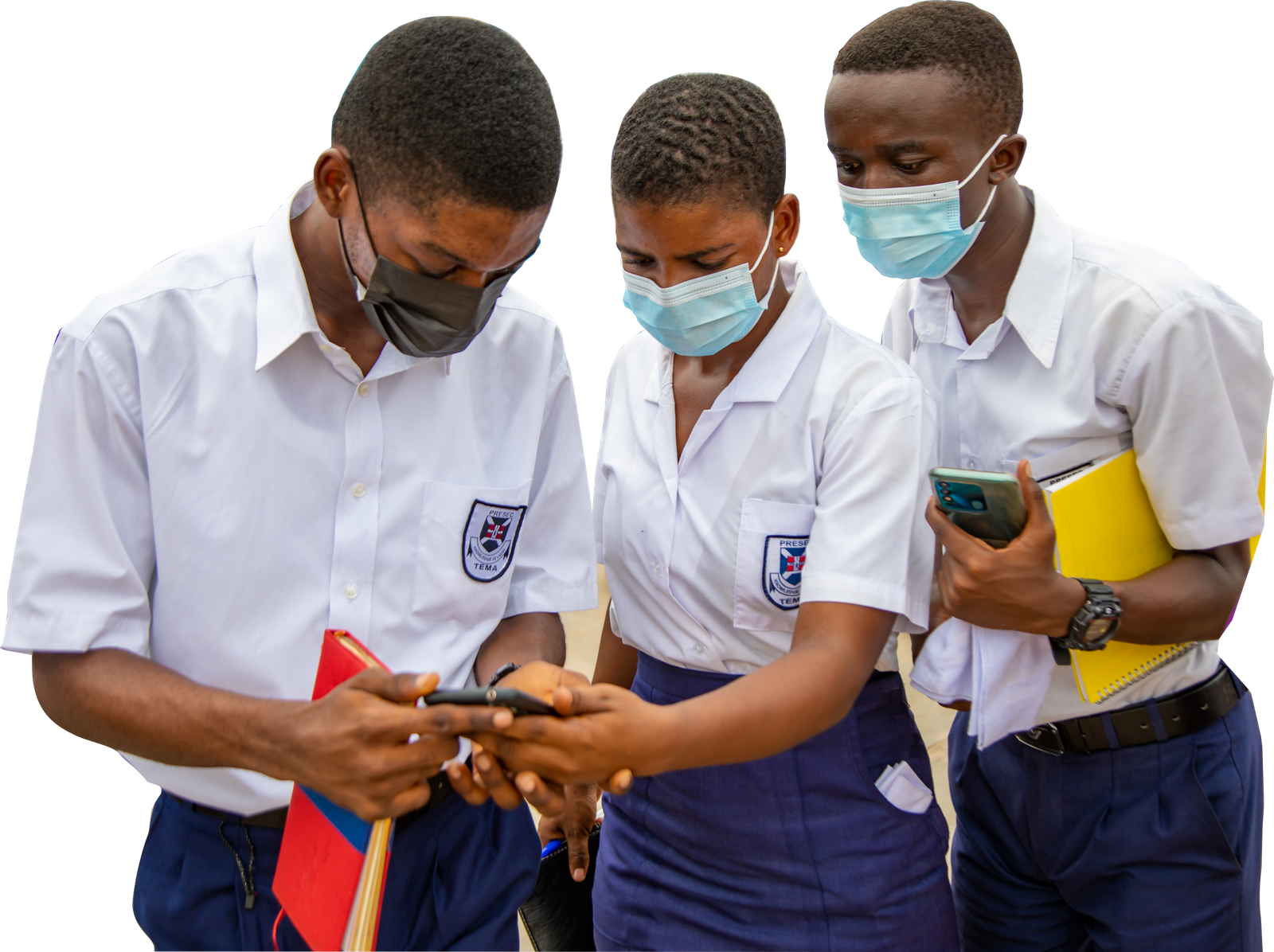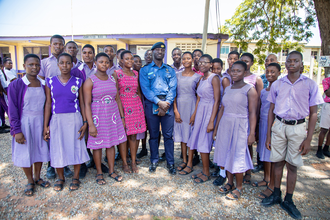 Hon. Yves Nii Noi Hanson-Nortey member of parliament for Tema Central Constituency with students of Presbyterian Senior High School at the Meridian Enclave
