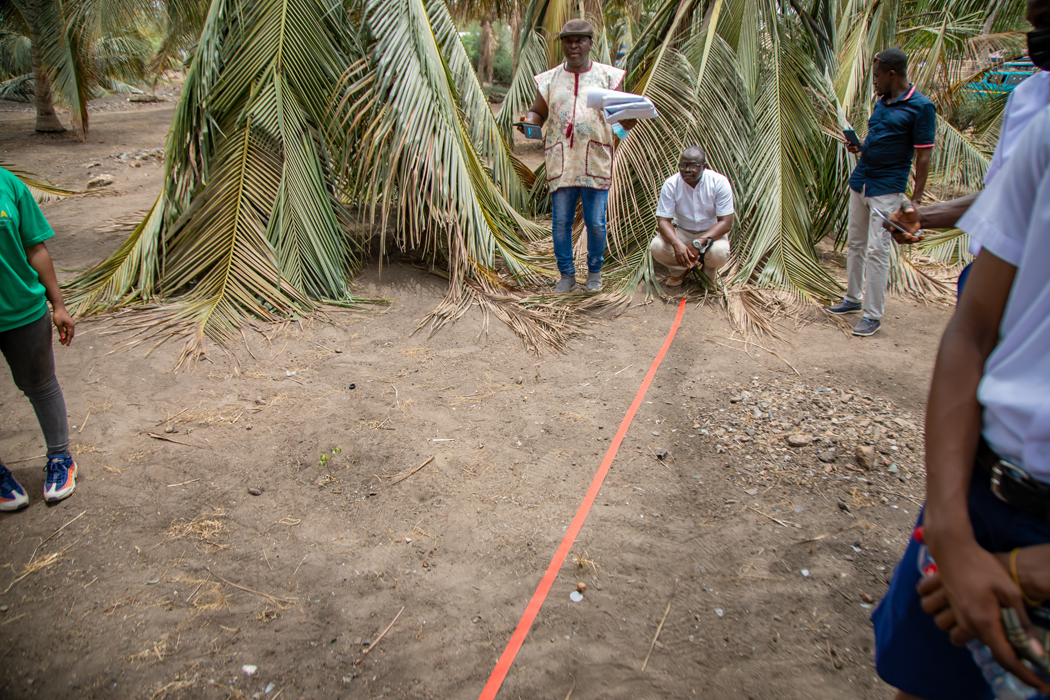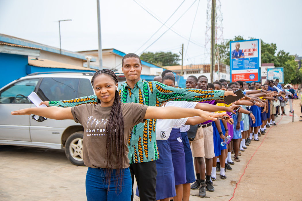 Participants trailing longitude 0° at the Tema Meridian Coconut Avenue