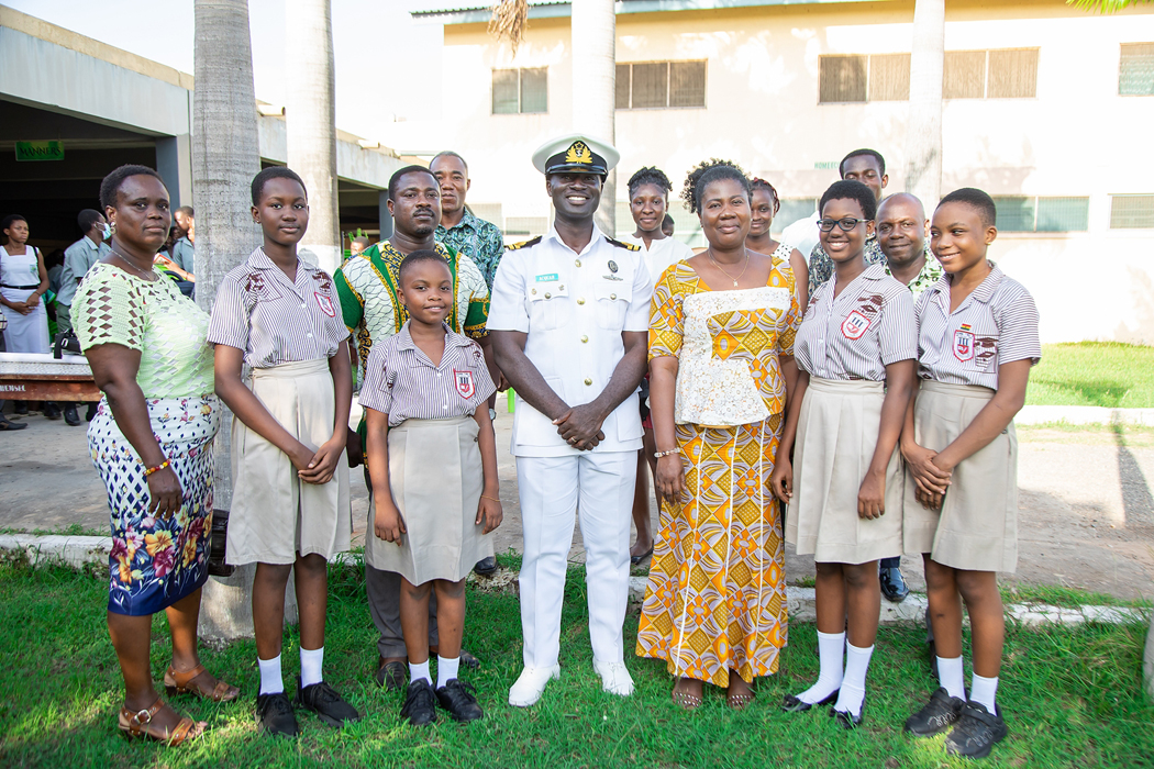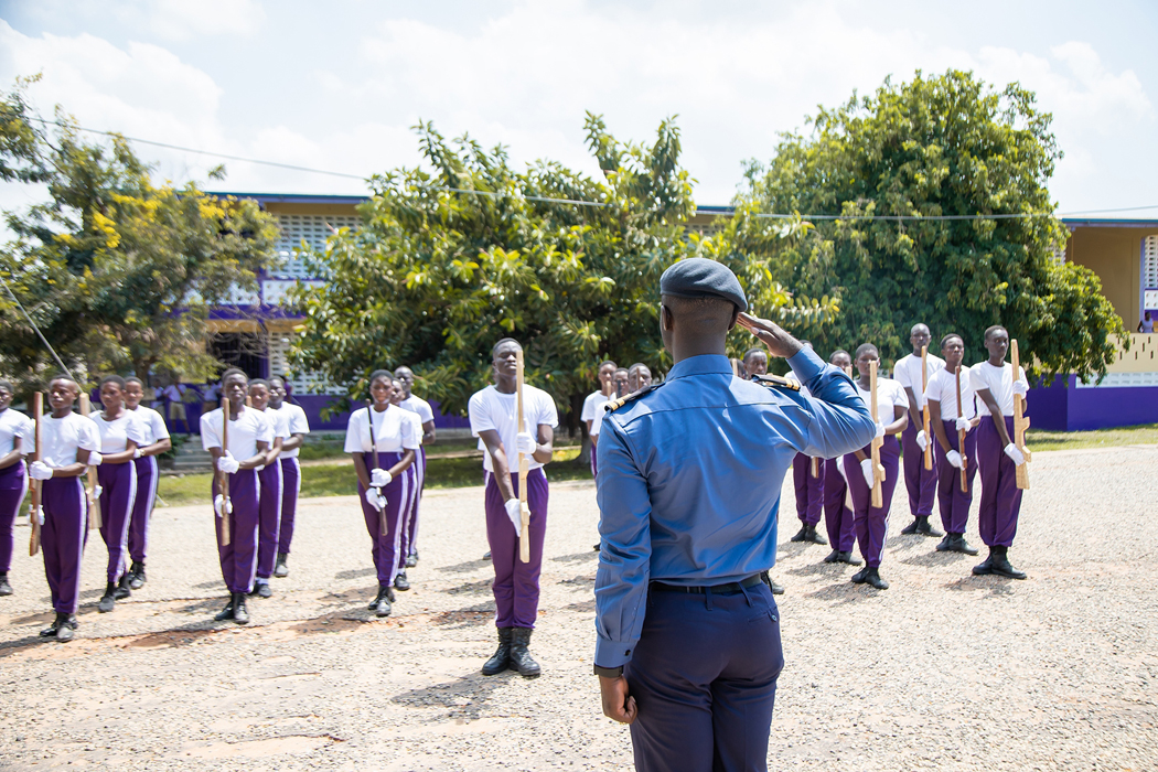 Hon. Yves Nii Noi Hanson-Nortey member of parliament for Tema Central Constituency with students of Manhean Secondary Technical School at the Meridian Enclave