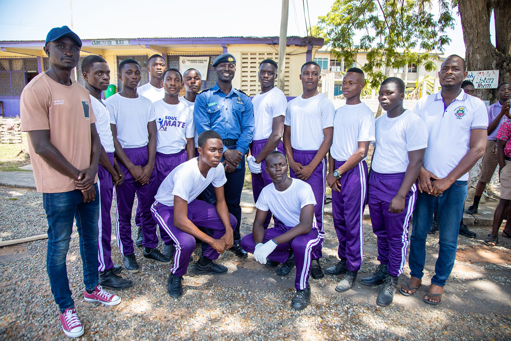 Hon. Yves Nii Noi Hanson-Nortey member of parliament for Tema Central Constituency with students of Tema Technical Institute at the Meridian Enclave